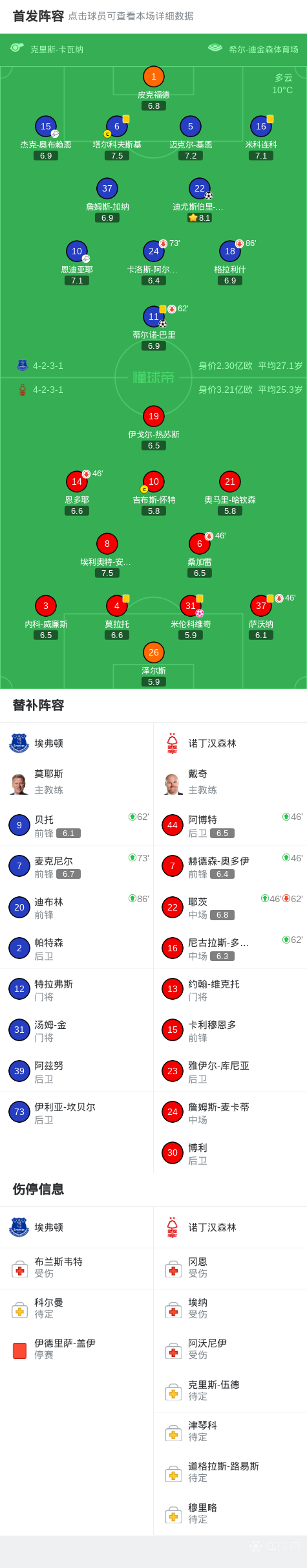 第80分鐘,霍爾禁區(qū)內(nèi)低射破門,埃弗頓3-0領(lǐng)先森林