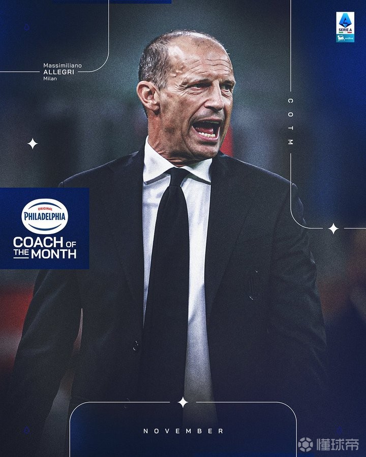 北京時(shí)間12月12日,意甲聯(lián)賽官方正式發(fā)布公告,確認(rèn)AC米蘭主教練阿萊格里榮獲意甲聯(lián)賽11月月度最佳球員稱號。在11月的意甲聯(lián)賽賽程中,AC米蘭共完成4場對決,取得3勝1平的不敗戰(zhàn)績,依次戰(zhàn)勝羅馬、國際米蘭及拉齊奧三大勁旅,且三場勝利均以1-0的比分實(shí)現(xiàn)。基于上述帶隊(duì)表現(xiàn),阿萊格里經(jīng)意甲聯(lián)賽官方技術(shù)委員會(huì)綜合評估,獲評意甲聯(lián)賽11月最佳球員。截至意甲聯(lián)賽第14輪賽事結(jié)束,AC米蘭以9勝4平1負(fù)的戰(zhàn)