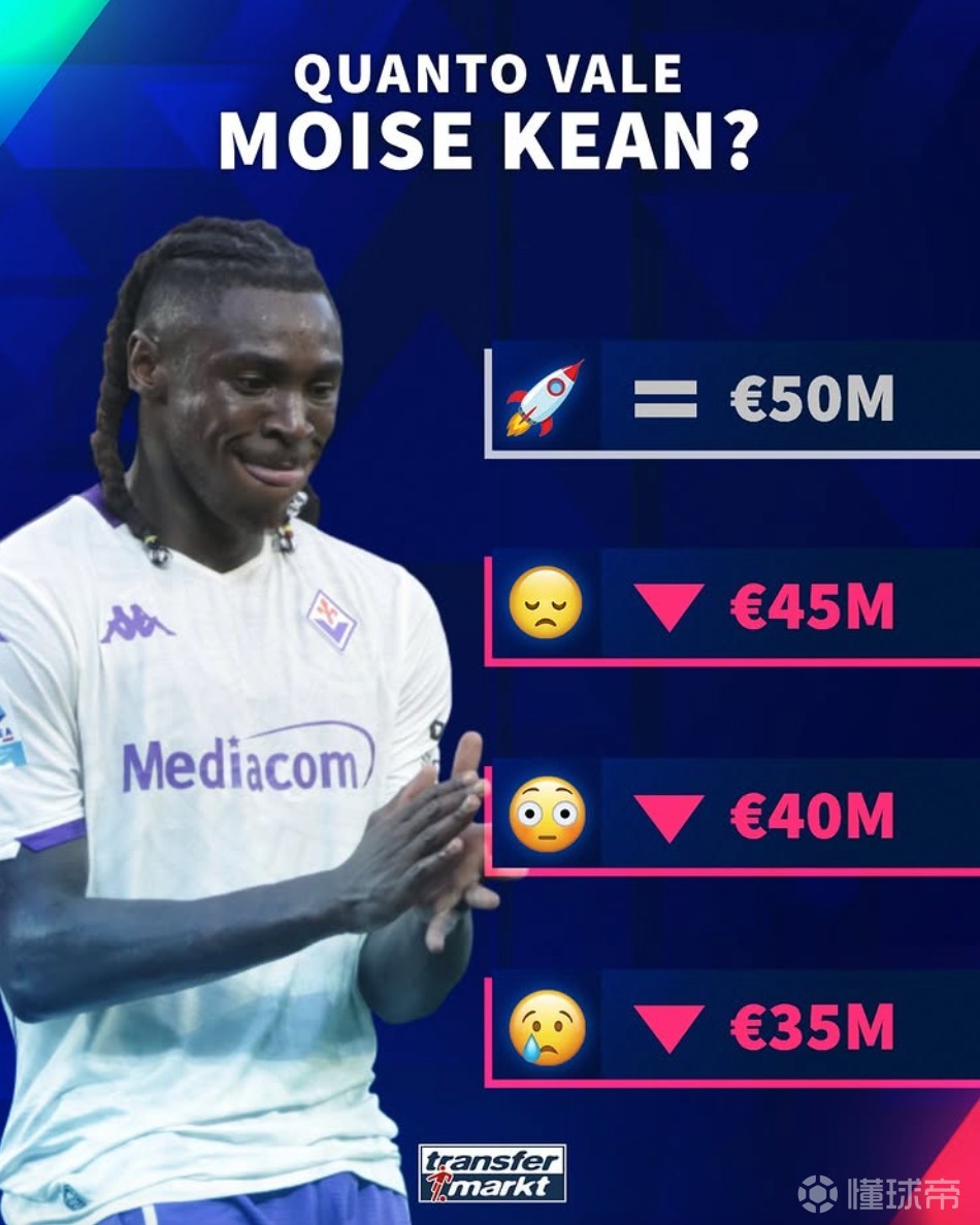 北京時(shí)間12月13日,德轉(zhuǎn)竟以近乎戲謔的方式預(yù)熱了佛羅倫薩前鋒莫伊塞-基恩的身價(jià)更新,他們拋出四個(gè)選項(xiàng),其中三個(gè)竟是毫無懸念的下跌。現(xiàn)年25歲的莫伊塞-基恩,本賽季代表佛羅倫薩出戰(zhàn)17場正式比賽,其中15次擔(dān)任首發(fā),卻僅貢獻(xiàn)3粒進(jìn)球和1次助攻。更諷刺的是,佛羅倫薩竟在意甲前14輪過后6平8負(fù),排名墊底,這樣的成績單,簡直是對其高薪的嘲諷。德轉(zhuǎn)將于12月23日更新意甲球員身價(jià),在莫伊塞-基恩本賽季表